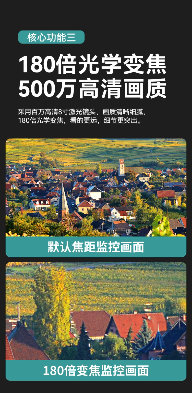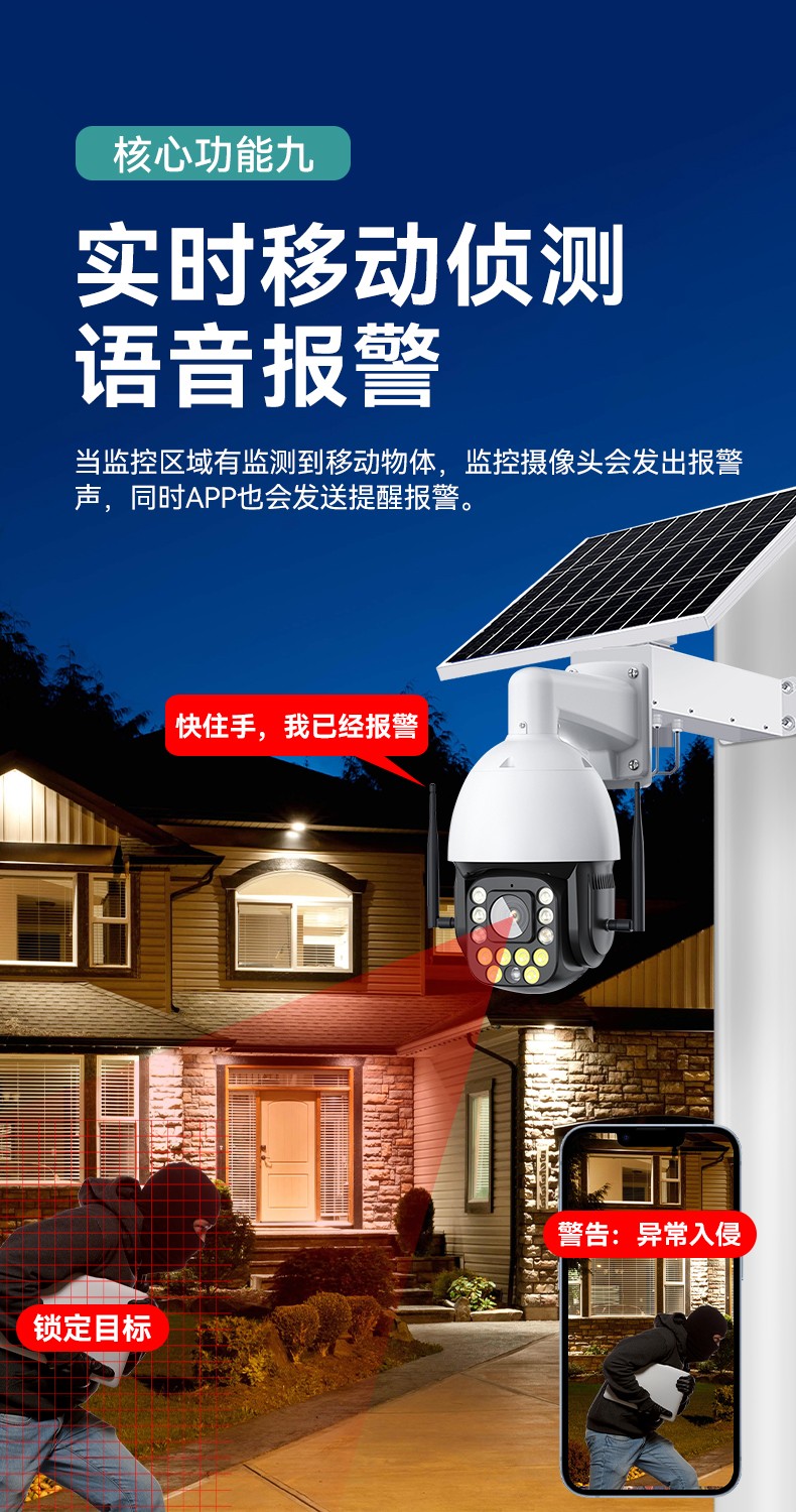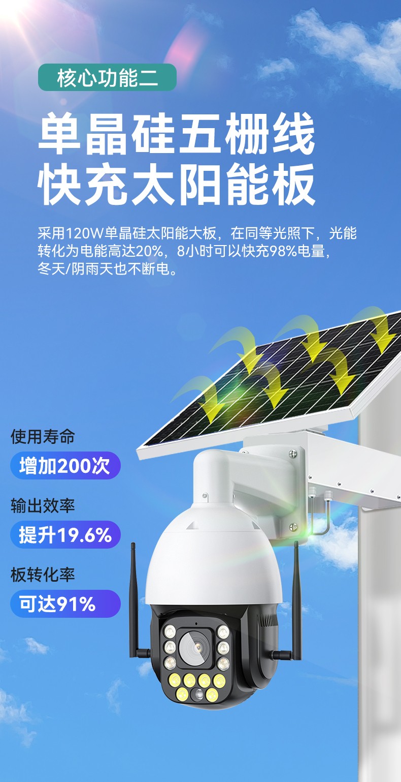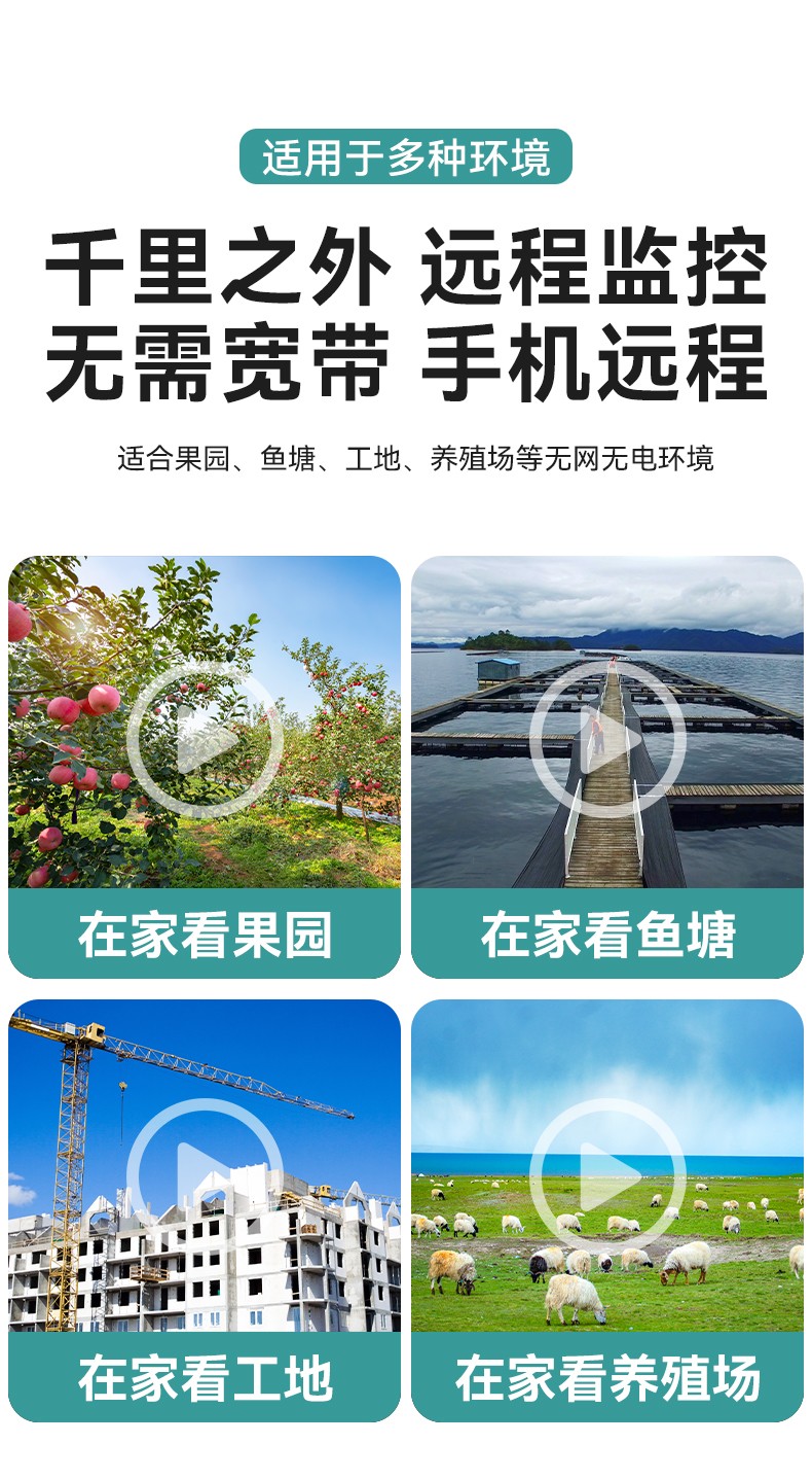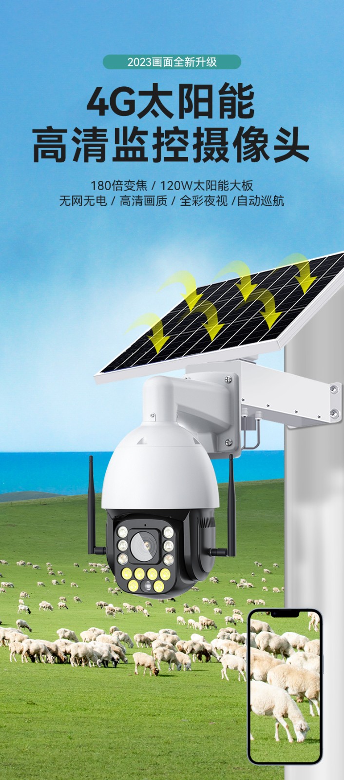 4G 太陽能監(jiān)控攝像頭(YS-W60) 產品規(guī)格 功能特點 資料下載 4G 太陽能監(jiān)控攝像頭(YS-W60)1.視角范圍:水平360°垂直90°2.日夜轉換模式:自動ICR紅外濾片3.電源:光電兩用,太陽能+內置鋰電池供電4.防水等級:IP66級5.存儲方式:支持TF卡,云存儲6.安裝方式:底座安裝(壁裝)7.材質:金屬8.無需寬帶、無需電源、即插即用、插上4G流量卡9.180倍光學變焦、500萬高清畫質10.遠程監(jiān)控,手機實時查看11.實時移動偵測,語音報警適用場景:魚塘、果園、養(yǎng)殖場、山區(qū)等