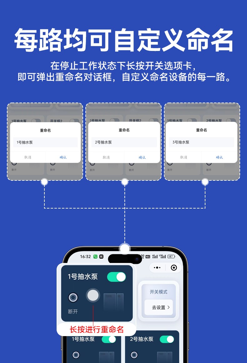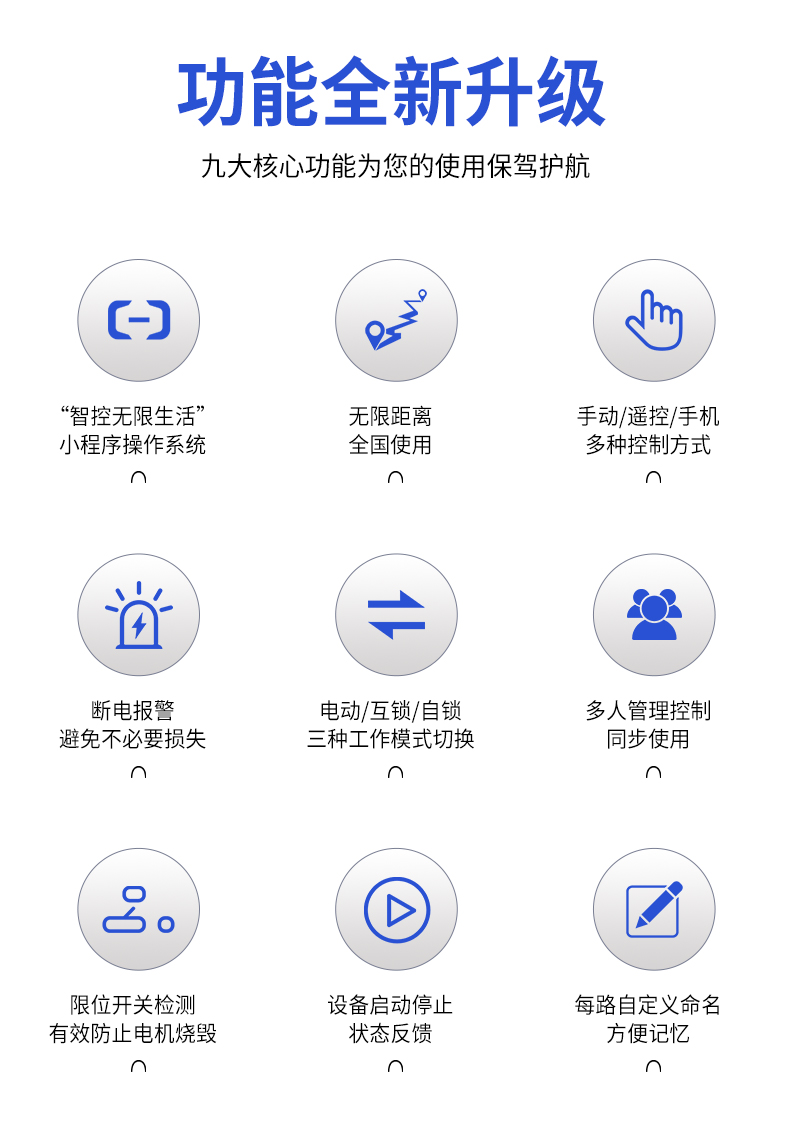 電機正反轉遙控開關 產品規格 功能特點 資料下載 電機正反轉遙控開關智控無限生活小程序操作系統三種模式切換:點動/自鎖/互鎖控制方式:手動、遙控、手機斷電報警多人管理控制同步使用設備啟動停止狀態反饋每路自定義命名手機不限制距離輸入電壓:280v/380v通用應用場景:起吊設備 ,大鵬卷簾機、升降設備、正反轉電機,工業信號控制, 投影幕布等