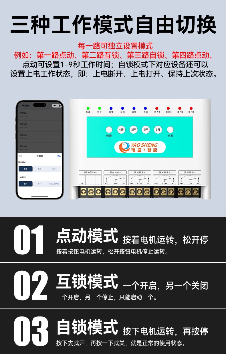 8. 三種模式自動(dòng)切換:點(diǎn)動(dòng)模式、互鎖模式、自鎖模式